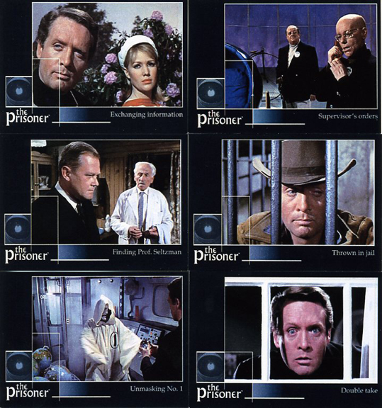 McGoohan died at the ripe old age of 80. He had just become a great grandfather last June. He didn't live to see the new version of The Prisoner . AMC has "re-imagined" the series and plans to release it this November, staring Jim Caviezel (Jesus in The Passion of the Christ) and Sir Ian McKellen (Magneto in X-Men and Gandalf in Lord of the Rings ). While waiting for that, we can still relive the original Prisoner series through the latest card series: The Prisoner trading cards Volume 2. This series was written by Roger Langley, who also helped Cards Inc write Volume One. Roger is well qualified for such a project. He's written several books about McGoohan, the latest being a biography called Patrick McGoohan: Danger Man or Prisoner? (Available at www.Tomahawkpress.com)
