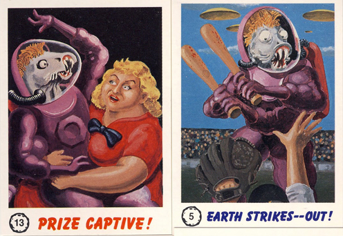 I asked Ting if he ever heard anything back from Topps about his set. He doubted they ever even heard of it, but even if they did, he didn't expect any problems. "I didn't want it to be a Mars Attacks 2 . It wasn't like a Mad magazine parody using the same Martian characters and creating a different scenario. I wanted to create something new, but obviously, it kind of echoes Mars Attacks."