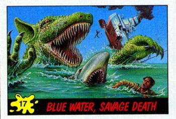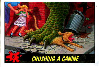 So the next time you see Dinosaurs Attack tossed into a bargain bin of dumped product, take some time to appreciate it. Rest assured, if it weren't so common, it would otherwise reside in a locked showcase with a hefty price tag slapped on it. This is one of the hobby's most eye grabbing sets. Its cheap cost makes it the perfect introduction to the wonderful world of non-sports cards.