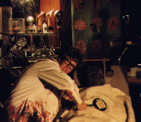 The doctor calls for his assistant. Algore appears, complete with an obligatory hunch on his back. The doctor unveils his latest creation. It's a large Frankenstein monster. Algore activates the power and a Jacob's ladder loudly zaps while spinning lights and strobes light up the room. The doctor jolts the monster alive and it attacks Algore, ripping off his arm and beating him with it. The horrified doctor subdues the creature with chloroform. He tells you he can make millions of monsters because of an endless supply of spare parts that he has at his disposal. He leads you to a dark room to make his point. He turns on the lights and reveals a convict strapped to a chair. He throws a switch and sparks fly. The convict's mouth glows as the power surges through his convulsing body. The doctor laughs as Florida's infamous electric chair claims another victim.