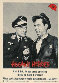 There are so many funny and fascinating tidbits about this series, that it's difficult to decide where to begin. For starters, the series was produced by Bing Crosby (yes, THAT Bing). What inspired him to think a German concentration camp would make a hilarious location for a comedy is unclear, but he certainly proved the Nazi naysayers wrong. One of the biggest benefactors was none other than Groucho Marx. He helped finance the series and is said to have made a killing. But the playwright of Stalag 17 (a super serious motion picture drama) seemed to believe he owned the concentration camp concept. He sued Crosby Productions for plagiarism and actually won. But even that couldn't stop this series from becoming a hit. It spawned numerous comic books, board games, lunch boxes, and even a gum card set in 1965. The black and white series by Fleer is well sought after by modern collectors. (The complete set of 66 puzzle-backed cards are valued at over $1,000 in Excellent condition!)