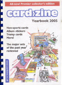 In 2005, another British author released a price guide, but with a twist: it was a "yearbook" devoted only to sets released in 2004. It was the Cardzine yearbook 2005 , and it described itself as " a 162 page reference fanzine detailing the entertainment trading card, album sticker and trump card releases of the past year. Inside you'll find comprehensive information on over 150 sets issued in 2004." The spiral bound book measures 6" x 8.25" and is categorized by the company name, not the card title. It includes sample images and detailed information on each series released by the manufacturer for that year. Unfortunately, I'm unaware of any follow up series.