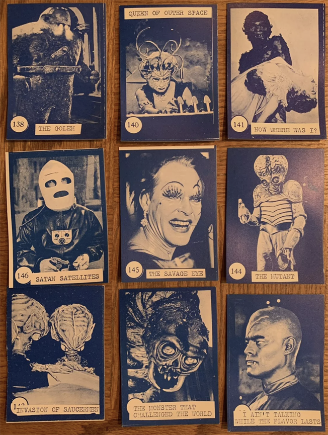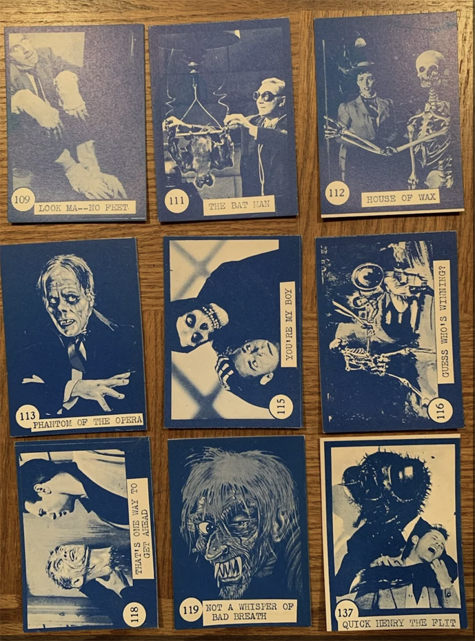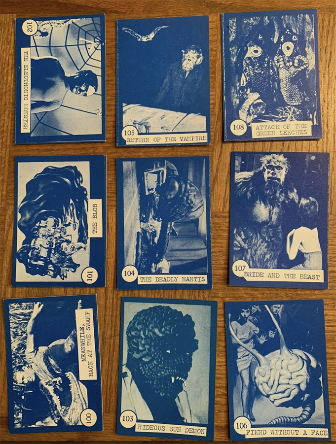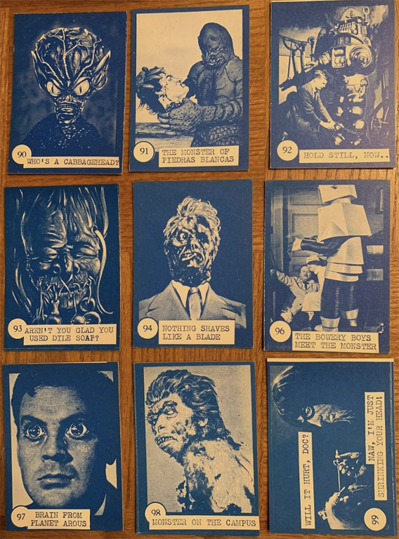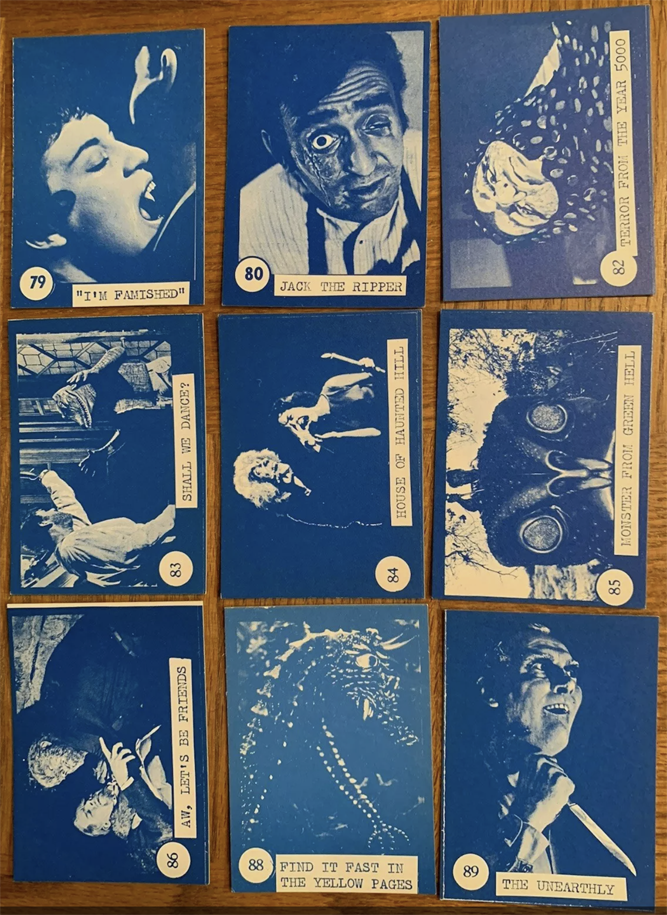 There. I said it. Burn me at the stake if you must, but at least I will have died in the right. And I know I’m right because a big payload of Horror Monster Blue cards recently sold in July on eBay for a whopping $1,583.90! And the 54 different card images from that sale are very revealing.